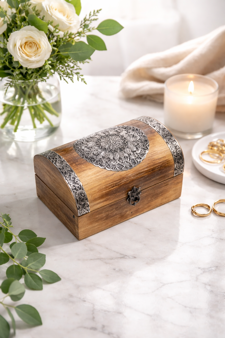 Decorative Wooden Box for Jewelry & Keepsakes