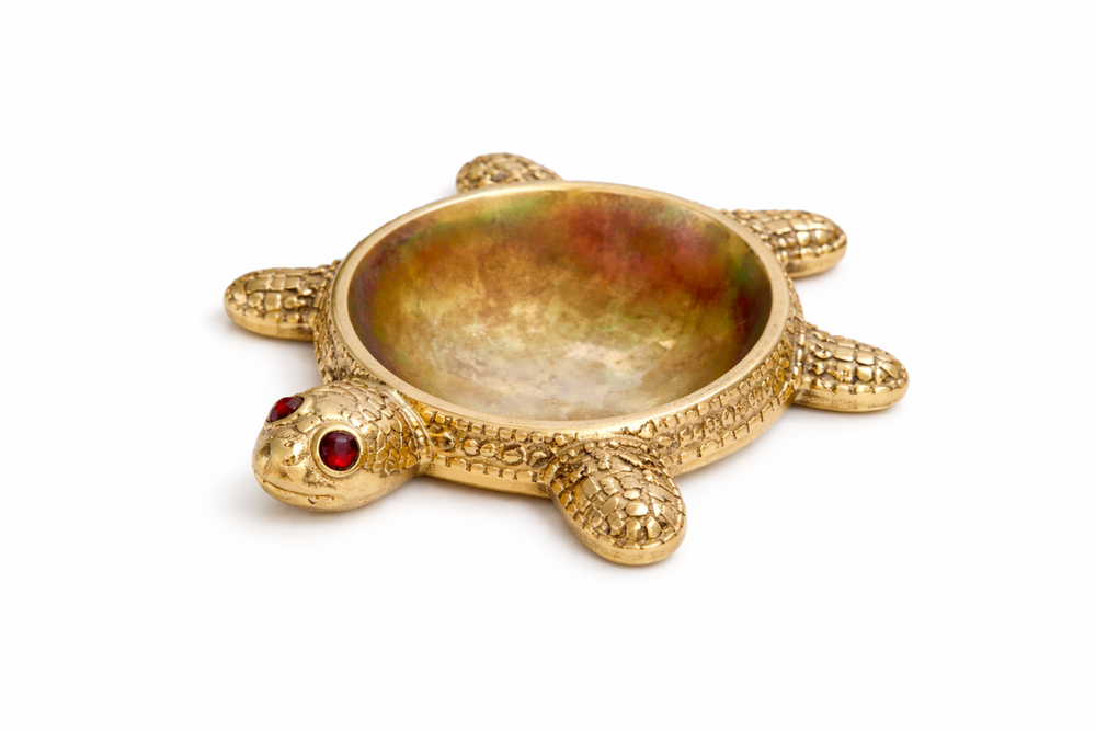 Brass Tortoise Figurine with Plate for Good Luck