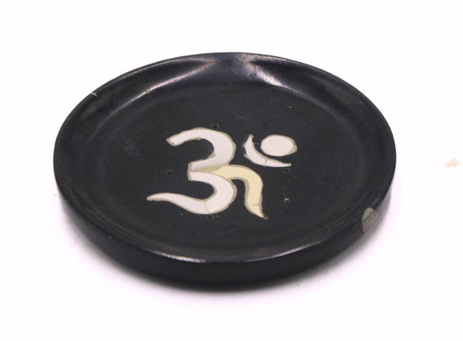Traditional Black Soapstone Handcrafted Om Incense Plate