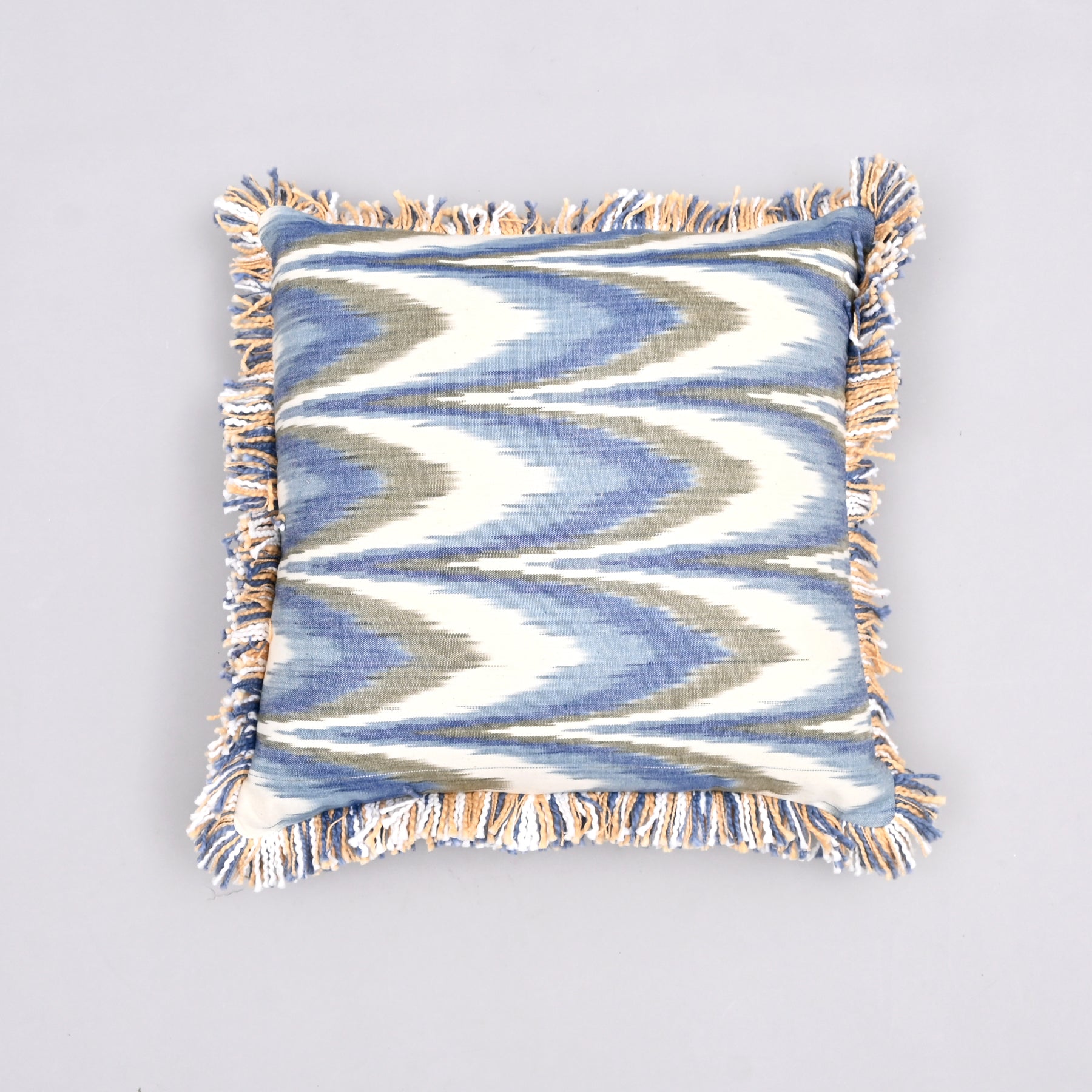 Wander nature's paths with the Blue Hillock Pillow Cover, an 18x18-inch luxury crafted from responsibly sourced, no-kill silk. Woven in-house, its hillock-inspired pattern ripples through the fabric, evoking serene landscapes. Handcrafted with care, this cover brings a tranquil charm to sofas, beds, or chairs. The silky texture and subtle sheen blend eco-conscious artistry with elegance, perfect for calm spaces. Its unique design captivates, inviting relaxation. Elevate your decor with this handwoven treasure, where natural beauty meets modern allure in a stunning embrace.