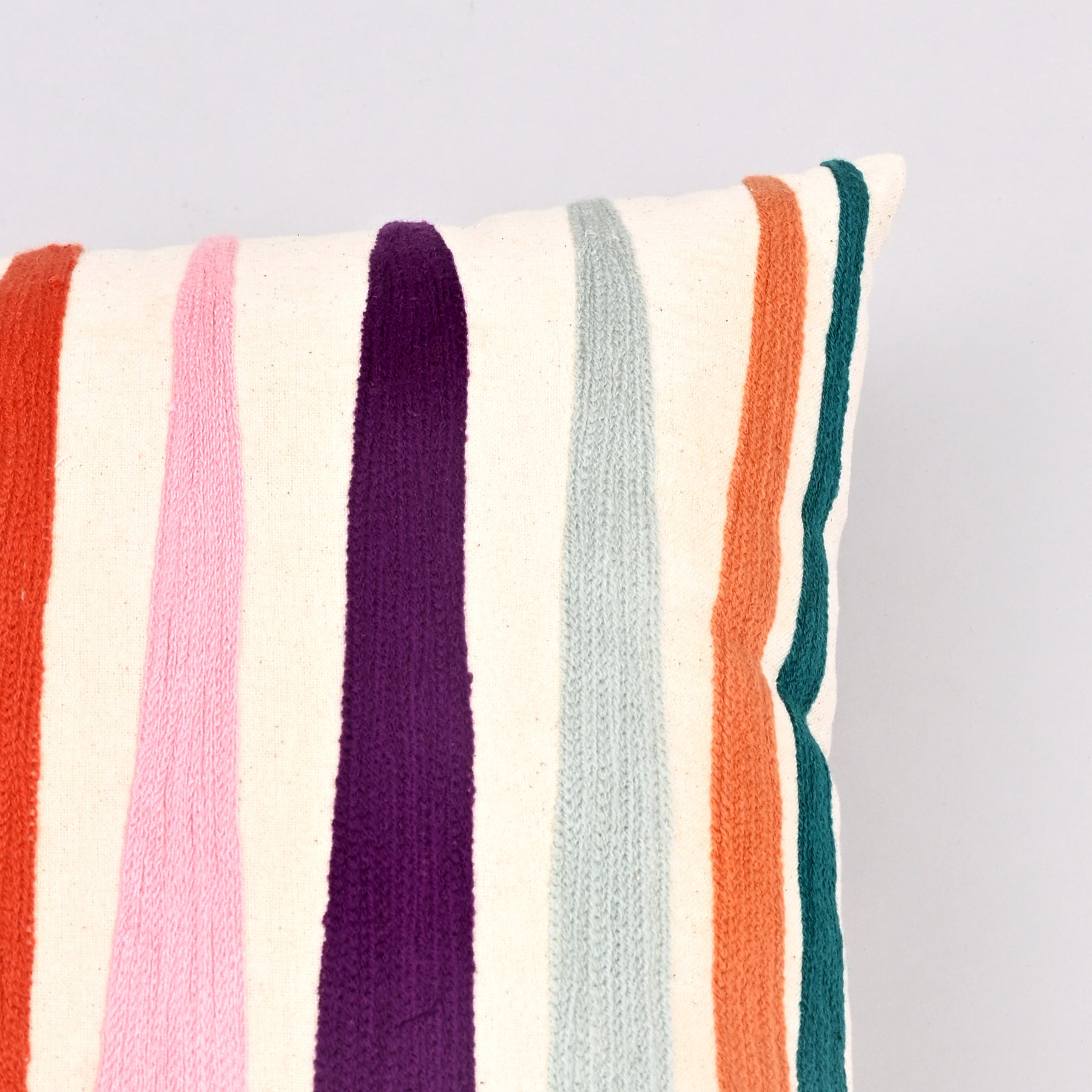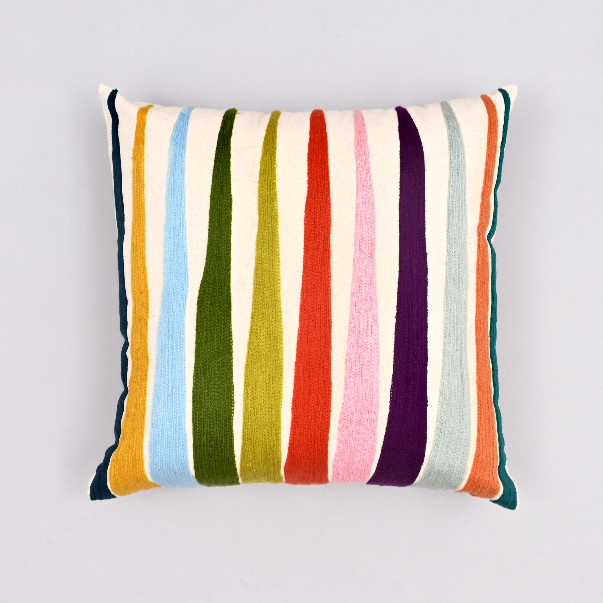 Discover artistry with the Crewel Embroidered Pillow Cover, an 18x18-inch handcrafted gem featuring Margo Selby's spliced lines. Intricate crewel embroidery forms a modern, dynamic pattern, adding bold flair to sofas, beds, or chairs. Handmade with care, its raised lines create a tactile, contemporary masterpiece. The rich textures blend cozy comfort with striking design, perfect for eclectic or modern decor. Each stitch reflects artisanal passion, transforming your space with unique charm. Elevate your home with this embroidered treasure, where bold lines meet handcrafted elegance.
