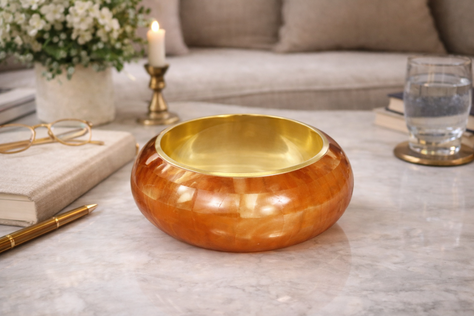 Color Finish: Amber Glow Orange–stained Mother of Pearl