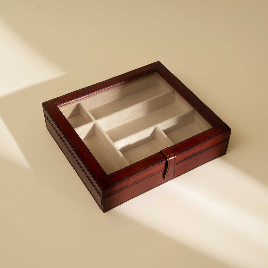 Elegant Tan Leather Tie Box Luxury Accessory Storage