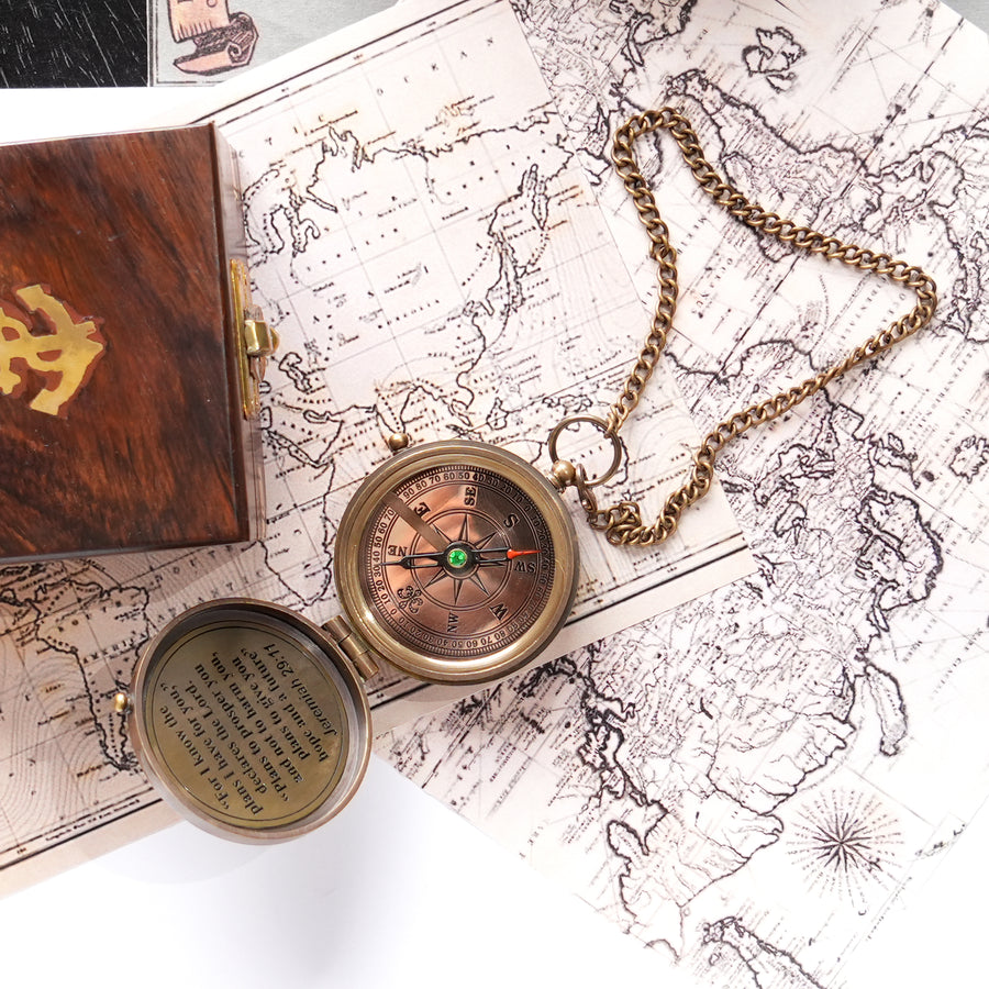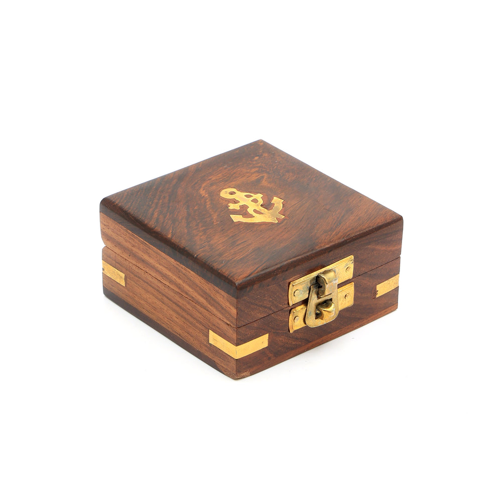 Vintage Brass Compass in Wooden Box Nautical Gift & Decor