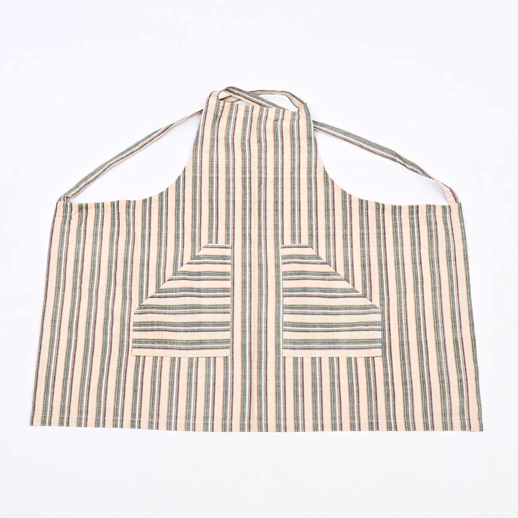Add a splash of tradition and practicality to your kitchen with our Handloom Cotton Apron Set. Woven by skilled weavers from Kahirode, Kannur in Kerala, each apron is made from 100% pure, breathable cotton that is gentle on the skin. Featuring a timeless multi-color checkered pattern created with long-lasting Vat dyes, these aprons are as stylish as they are durable. Designed with an easy-to-wear neck strap and roomy front pockets, they offer both comfort and convenience. Ideal for cooking, baking, gardening, or creative work, this set of four is a perfect blend of heritage craftsmanship and everyday functionality.