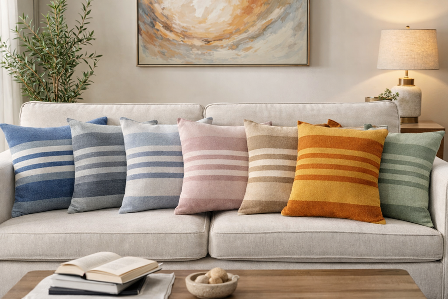 Premium Cotton Woven Stripe Cushion Covers – Set of 2