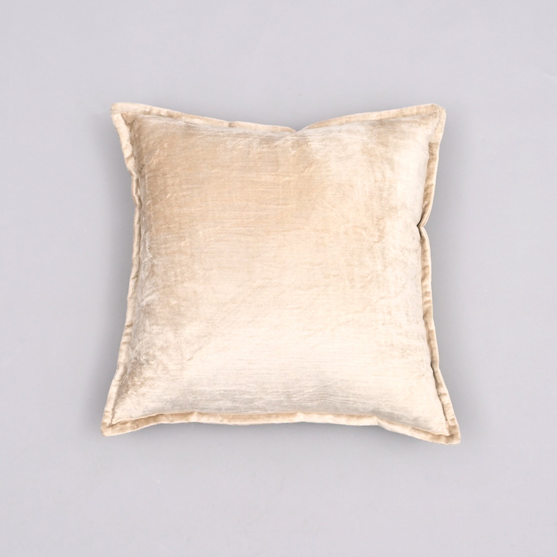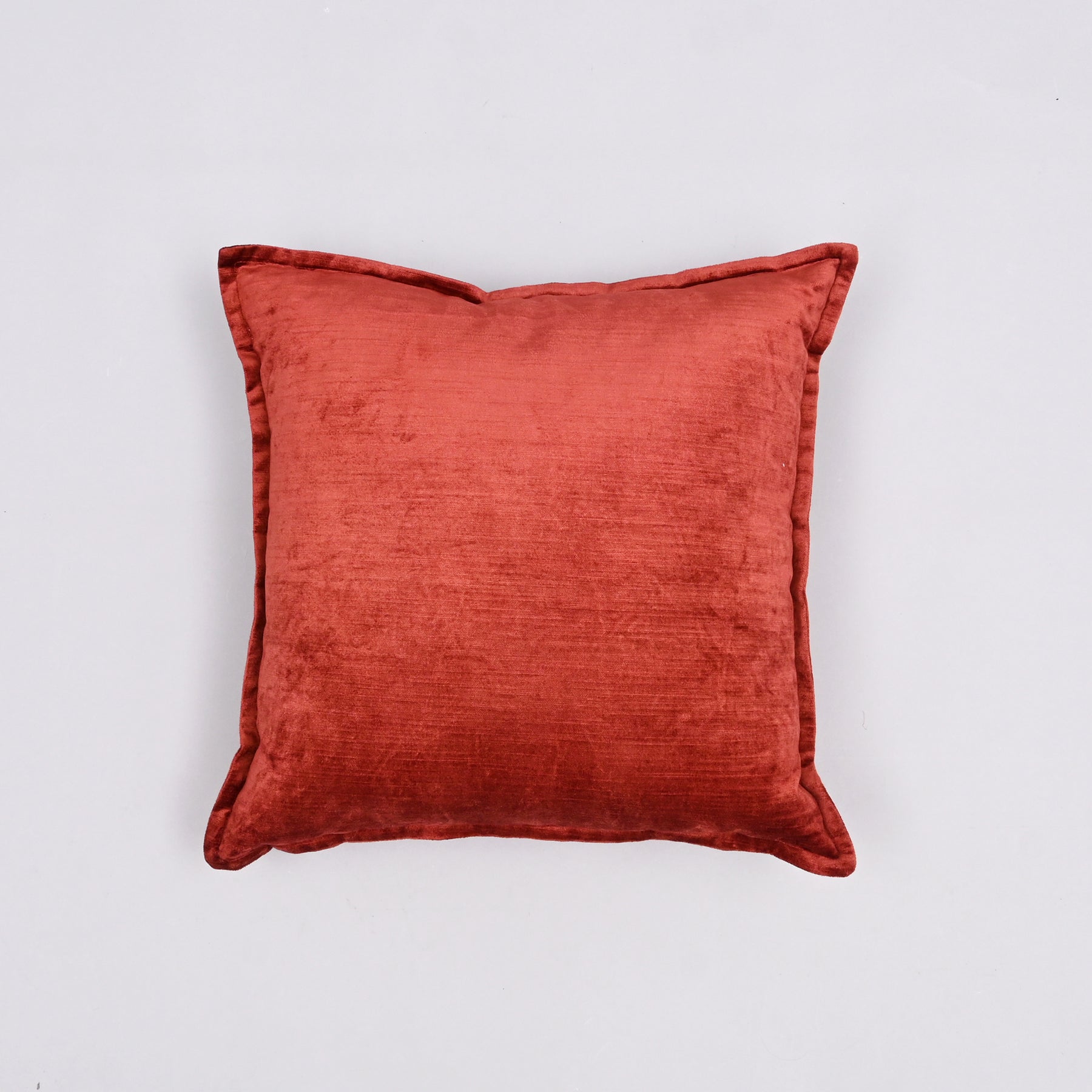Unveil luxury with the Velvet Cushion Cover, an 18x18-inch artisan masterpiece crafted from a cotton-viscose velvet blend. Self-fabric flanges frame its subtle sheen, delivering supreme softness on both sides for a lavish touch. Handmade with an enzyme-washed finish, each piece is distinct, infusing your space with elegance. Ideal for sofas, beds, or chairs, this cover marries sophistication with comfort. Colors may vary slightly due to screens, but its plush allure is undeniable. Transform your home with this handcrafted jewel, where velvety richness meets timeless style in a captivating embrace.