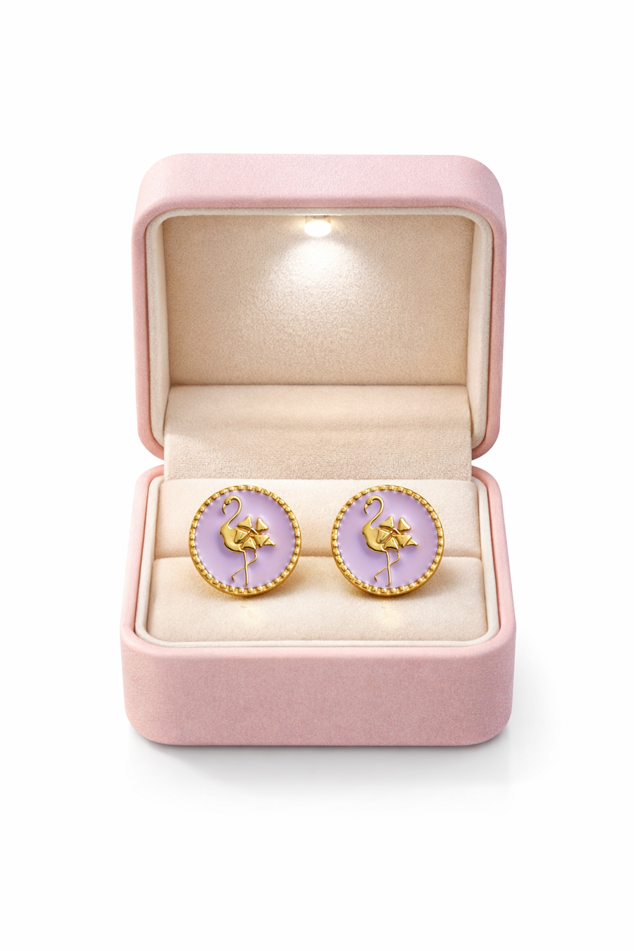 Enamel flamingo design on a soft pink background for tropical charm