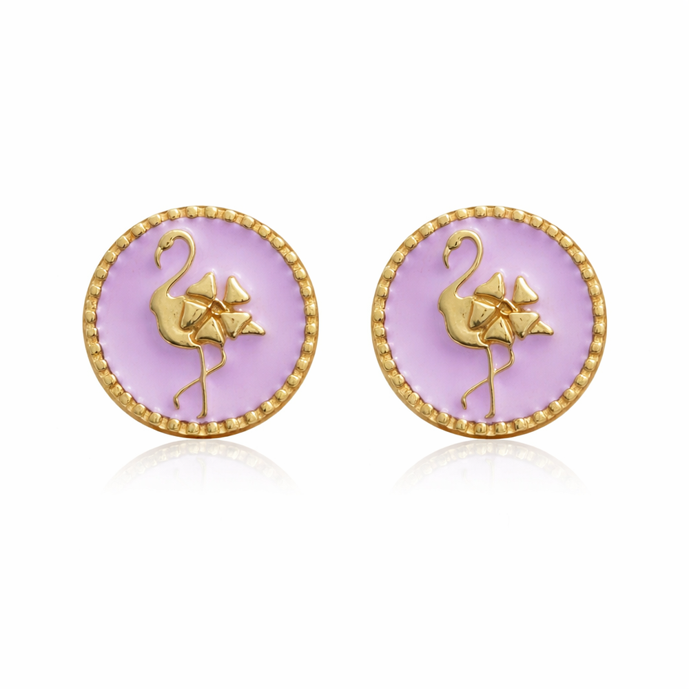 Add a splash of tropical charm with these Flamazing studs. Crafted from gold-plated brass with enamel accents, they feature a playful flamingo design on a soft pink background. Lightweight and comfortable for all-day wear, they bring fun and elegance to any outfit. Perfect for casual looks, office styling, or gifting to someone special.
